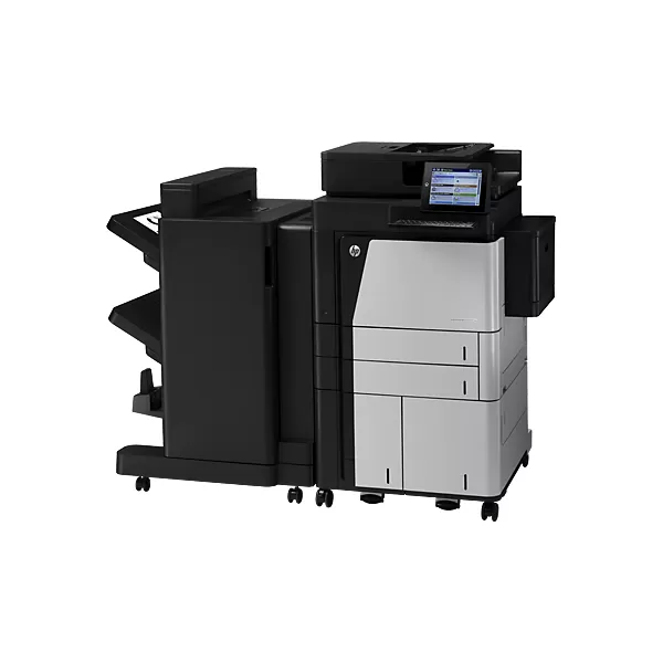 HP LaserJet Enterprise flow M830z; A3, max 56ppm A4, 28ppm A3, max 1200x1200dpi (FastRes, ProRes), 1.5 GB RAM, min 320GB HDD HP Secure, fpo A4 9.5 sec, PCL6, PCL5e, PostScript 3 emulation, PDF 1.4, tavi 100+500+500 coli +1500 (A4) + 2000 (A4) coli si stand, duplex; scanner: flatbed, ADF 200 coli duplex, max 600dpi optic, 256 niveluri de gri, 24-bit, 70/68 ppm mono/color A4, 85/63 ipm mono/color A4 duplex; copy: max 56cpm A4, max 600x600dpi, copii multiple 999, scalare 25-400%, fax : 33.6 kbps, memorie max 500 pag, max 300x300 dpi, 100 numere apelare rapida; digital sending : scan to email, network folder, Sharepoint, USB, FTP, network fax, internet fax, local address book, SMTP; USB 2.0, 2x USB host, 2 x USB intern, GB Eth, FIH, HIP, toner CF214A (10k), volum recomandat 15.000 - 50.000 pag/luna, max. 300.000pag/luna; optional wireless, NFC/wireless, toner CF325X (40k), MK C2H57A (200k), ADF roller kit C1P70A, stapler/stacker CZ994A, stapler/stacker/punch 2/4 CZ996A, booklet maker/finisher CZ285A. Se comanda cu un dispozitiv de iesire pentru functionare.