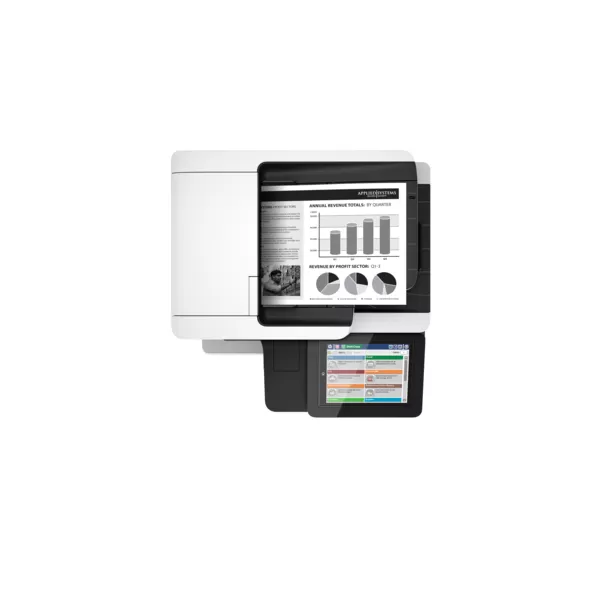 LaserJet Enterprise Flow MFP M527c Printer; A4, max 43ppm (34ipm duplex), max 1200x1200dpi, memorie 1.25 GB (max 2GB) printer, 500MB scanner, procesor 1.2 GHx, fpo 5.7 sec (ready), 8.7 sec (sleep), HP PCL6, PCL5c, PostScript 3 emulation, native PDF printing v1.7, tava 100+550coli (nax 2.200 coli), duplex (print/scan/copy), control panel touchscreen LCD color 20.3cm rotativ, tastatura integrata, ADF 100 coli (dualscan); scan: max 45ppm/64ipm black, 45ppm/58ipm color, max 600dpi optic, 256 niveluri de gri, 24 bit; copy: max 43cpm A4 black, 600x600dpi flatbed, 600x450 dpi ADF, copii multiple 9999, scalare 25-400%; fax 33.6 kbps, USB2.0, 2xUSB Host, GB Ethernet, HIP, toner HP 87A (9k), max 150.000pag/luna, recomandat 2.000-7.500pag/luna (print), 8.350 - 13.900 pag/luna (scan); optional wireless/NFC, tavi 550 coli, cabinet, HDD 16GB eMMC, tonere HP 87A/X