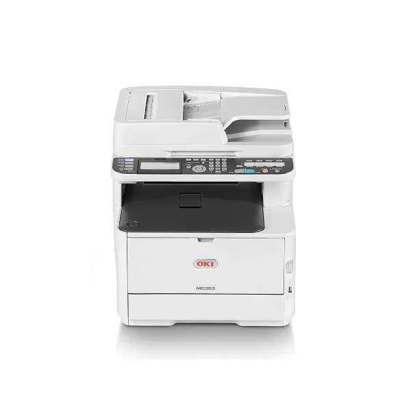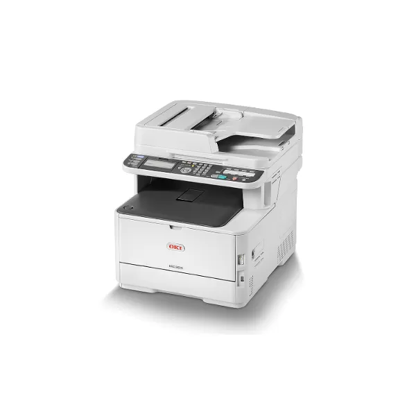 OKI MC363dn; print, copy, scan, fax; A4, print : max 30ppm mono, 26ppm color, memorie 1GB RAM; 3GB eMMC, rezolutie ProQ2400 Multi-level Technology, 1200 x 600dpi, 600 x 600dpi, fpo 8.5 sec mono, 9 sec color, limbaje PCL6 (XL3.0) and PCL5c, PostScript 3 (emulation), PDF v1.7, SIDM (IBM-PPR, EPSON-FX), XPS; tavi 100+250 coli, duplex; copy : max 30cpm mono, 26cpm color, fco 12 sec mono, 14 sec color, max 600x600dpi, scalare 25-400%, max 99 copii; scan : rezolutie optica 600 x 600dpi, max 30ppm mono/color, RADF 50 coli, adincime de culoare : input 30-bit / output 24-bit, scan-to : CIFS, FTP, HTTP, USB memory, E-mail, Local PC, Remote Scan, formate : S/M-PDF, S/M-Secure PDF, S/M-TIFF (RAW/JPEG/MMR Compressed), JPEG (colour, grey scale only), XPS, S/M-Hi compression PDF, PDF/A, address book : LDAP, 300 e-mail address, 20 group addresses, 7 niveluri de contrast; fax : ITU-T G3(Super G3) up to 33.6kbps, 2 sec/pag, 16 one touch dials (8 x 2 using shift key), 300 speed dials, memorie 256MB (~ 8.000 pag); LCD blue backlit graphics panel, keypad 12 alpha/numeric keys, 4 main function buttons; 2 x USB 2.0 (device, host), GB Ethernet; tonere in-box 1.00 pag, recomandat max 5.000 pag/luna, duty cycle max 45.000 pag/luna; consumabile ulterioare : tonere 1.5k pag (Black: 46508716, Cyan: 46508715; Magenta: 46508714; Yellow: 46508713), toner 3.5k pag Black (46508712), tonere color 3k pag (Cyan: 46508711; Magenta: 46508710; Yellow: 46508709), image drum 30k pag (44968301), transfer belt 60k pag (44472202), fuser unit 60k pag (44472603); optional : tava 530 coli (44472102), cabinet (01314101), Wireless LAN Module (45830202). Inlocuieste MC362dn