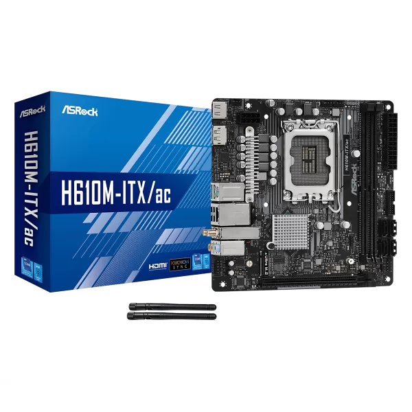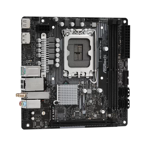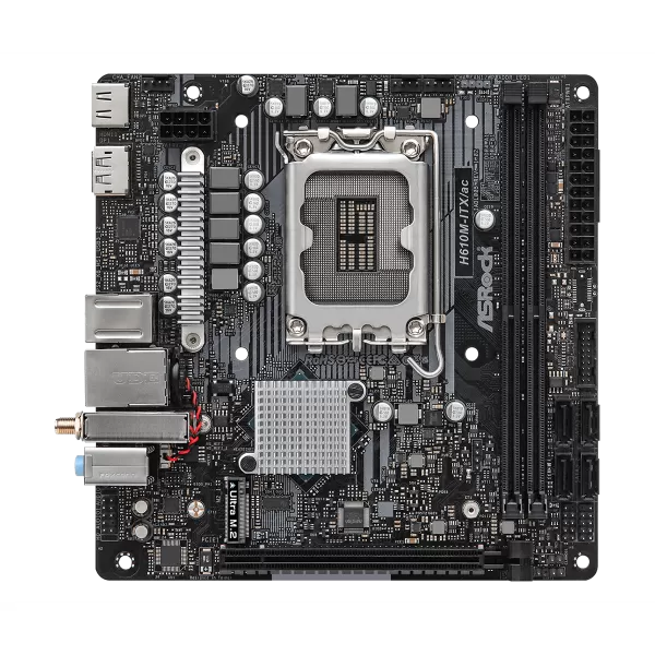 Placa de baza Asrock H610M-ITX/AC D4 LGA 1700 Supports 12th Gen Intel® Core™ Processors (LGA1700) 6 Phase Dr.MOS Power Design Supports DDR4 3200MHz 1 PCIe 4.0 x16 Graphics Output Options: HDMI, DisplayPort Realtek ALC897 7.1 CH HD Audio Codec 4 SATA3 1 Ultra M.2 (PCIe Gen3 x4 & SATA3) 4 USB 3.2 Gen1 (2 Front, 2 Rear) 4 USB 2.0 (2 Front, 2 Rear) Intel® Gigabit LAN Intel® 802.11ac WiFi + Bluetooth