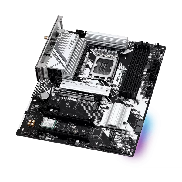 Unique Feature Rock-Solid Durability - 7+1+1 Power Phase, 50A Dr.MOS for VCore+GT - Pre-Installed I/O Shield - ASRock Intel® 4-Layer Memory POOL (Planes on Outer Layers) Technology Ultrafast Connectivity - 2.5G LAN, 802.11ax Wi-Fi 6EModule EZ Update - ASRock Auto Driver Installer EZ Troubleshooter - ASRock Post Status Checker CPU - Supports 13th Gen & 12th Gen and next gen Intel® Core™ Processors (LGA1700) - Supports Intel® Hybrid Technology - Supports Intel® Turbo Boost Max 3.0 Technology - Supports Intel® Thermal Velocity Boost (TVB) - Supports Intel® Adaptive Boost Technology (ABT) Chipset - Intel® B760 Memory - Dual Channel DDR4 Memory Technology - 4 x DDR4 DIMM Slots - Supports DDR4 non-ECC, un-buffered memory up to 5333+(OC)* - Supports ECC UDIMM memory modules (operate in non-ECC mode) - Max. capacity of system memory: 128GB - Supports Intel® Extreme Memory Profile (XMP) 2.0 *1DPC 1R Up to 5333+ MHz (OC), 3200 MHz Natively. 1DPC 2R Up to 4400+ MHz (OC), 3200 MHz Natively. 2DPC 1R Up to 4266+ MHz (OC), 3200 MHz Natively. 2DPC 2R Up to 4000+ MHz (OC), 3200 MHz Natively. BIOS - 128Mb AMI UEFI Legal BIOS with GUI support Graphics - Intel® Xe Graphics Architecture (Gen 12) - 1 x HDMI 2.1 TMDS Compatible, supports HDCP 2.3 and max. resolution up to 4K 60Hz - 1 x DisplayPort 1.4 with DSC (compressed), supports HDCP 2.3 and max. resolution up to 8K 60Hz / 5K 120Hz *Intel® UHD Graphics Built-in Visuals and the VGA outputs can be supported only with processors which are GPU integrated. Audio - 7.1 CH HD Audio (Realtek ALC897 Audio Codec) - Nahimic Audio LAN - 2.5 Gigabit LAN 10/100/1000/2500 Mb/s - Dragon RTL8125BG - Supports Dragon 2.5G LAN Software - Smart Auto Adjust Bandwidth Control - Visual User Friendly UI - Visual Network Usage Statistics - Optimized Default Setting for Game, Browser, and Streaming Modes - User Customized Priority Control Wireless LAN - 802.11ax Wi-Fi 6E Module - Supports IEEE 802.11a/b/g/n/ac/ax - Supports Dual-Band 2x2 with extended 6GHz band support* - 2 antennas to support 2 (Transmit) x 2 (Receive) diversity technology - Supports Bluetooth 5.3 + High speed class II - Supports MU-MIMO *Wi-Fi 6E (6GHz band) will be supported by Microsoft® Windows® 11. The availability will depend on the different regulation status of each country and region. It will be activated (for supported countries) through Windows® Update and software updates once available. A 6GHz compatible router is required for 6E functionality. Slots CPU: - 1 x PCIe 4.0 x16 Slot (PCIE1), supports x16 mode * Chipset: - 1 x PCIe 4.0 x16 Slot (PCIE3), supports x4 mode* - 1 x PCIe 4.0 x1 Slot (PCIE2)* - 1 x M.2 Socket (Key E), supports type 2230 WiFi/BT PCIe WiFi module and Intel® CNVio/CNVio2 (Integrated WiFi/BT) * Supports NVMe SSD as boot disks - Supports AMD CrossFire™ * Storage CPU: - 1 x Hyper M.2 Socket (M2_1, Key M), supports type 2242/2260/2280 PCIe Gen4x4 (64 Gb/s) mode* Chipset: - 1 x Hyper M.2 Socket (M2_2, Key M), supports type 2280 PCIe Gen4x4 (64 Gb/s) mode* - 4 x SATA3 6.0 Gb/s Connectors *Supports Intel® Volume Management Device (VMD) Supports NVMe SSD as boot disks RAID - Supports RAID 0, RAID 1, RAID 5 and RAID 10 for SATA storage devices USB - 2 x USB 3.2 Gen1 Type-C (1 Rear, 1 Front) - 5 x USB 3.2 Gen1 Type-A (3 Rear, 2 Front) - 6 x USB 2.0 (2 Rear, 4 Front) * All USB ports support ESD Protection Connector - 1 x SPI TPM Header - 1 x Chassis Intrusion and Speaker Header - 1 x RGB LED Header* - 3 x Addressable LED Headers** - 1 x CPU Fan Connector (4-pin)*** - 1 x CPU/Water Pump Fan Connector (4-pin) (Smart Fan Speed Control)**** - 4 x Chassis/Water Pump Fan Connectors (4-pin) (Smart Fan Speed Control)***** - 1 x 24 pin ATX Power Connector - 1 x 8 pin 12V Power Connector (Hi-Density Power Connector) - 1 x Front Panel Audio Connector - 1 x Thunderbolt™ AIC Connector (5-pin) (Supports ASRock Thunderbolt™ 4 AIC Card) - 2 x USB 2.0 Headers (Support 4 USB 2.0 ports) - 1 x USB 3.2 Gen1 Header (Supports 2 USB 3.2 Gen1 ports) - 1 x Front Panel Type C USB 3.2 Gen1 Header *Supports in total up to 12V/3A, 36W LED Strip **Support in total up to 5V/3A, 15W LED Strip ***CPU_FAN1 supports the fan power up to 1A (12W). ****CPU_FAN2/WP supports the fan power up to 2A (24W). *****CHA_FAN1~4/WP support the fan power up to 2A (24W). CPU_FAN2/WP and CHA_FAN1~4/WP can auto detect if 3-pin or 4-pin fan is in use. Rear Panel I/O - 2 x Antenna Ports - 1 x PS/2 Mouse/Keyboard Port - 1 x HDMI Port - 1 x DisplayPort 1.4 - 1 x USB 3.2 Gen1 Type-C Port - 3 x USB 3.2 Gen1 Type-A Ports - 2 x USB 2.0 Ports - 1 x RJ-45 LAN Port - HD Audio Jacks: Line in / Front Speaker / Microphone Software and UEFI Software - ASRock Motherboard Utility (A-Tuning) - ASRock Dragon 2.5G LAN Software - ASRock Polychrome SYNC* UEFI - ASRock EZ Mode - ASRock Full HD UEFI - ASRock My Favorites in UEFI - ASRock Auto Driver Installer - ASRock Instant Flash - ASRock Easy RAID Installer *These utilities can be downloaded from ASRock Live Update & APP Shop. Accessories - 1 x User Manual - 2 x SATA Data Cables - 2 x ASRock WiFi 2.4/5/6 GHz Antennas - 2 x Screws for M.2 Sockets - 1 x Standoff for M.2 Socket Form Factor - Micro ATX Form Factor: 9.6-in x 9.6-in, 24.4 cm x 24.4 cm OS - Microsoft® Windows® 10 64-bit / 11 64-bit *Windows® 10 only supports version 21H2 or later Certifications - FCC, CE - ErP/EuP ready (ErP/EuP ready power supply is required)
