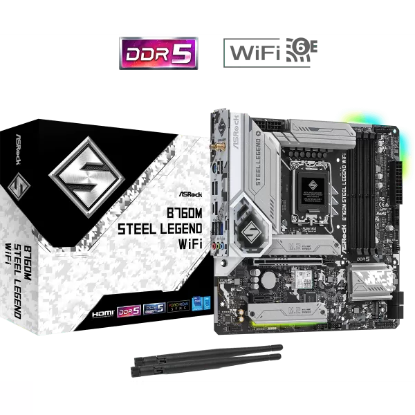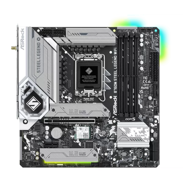 Placa de baza Asrock B760M STEEL LEGEND LGA1700, 4x DDR5, frecventa maxima 7200MHz, 1x DisplayPort, 1x HDMI, 1x PCIe x16, 1x PCIe x1, 3x M.2, 4x SATA3 6Gbs, LAN 2.5Gbps, WIFI, Bluetooth 5.3, microATX