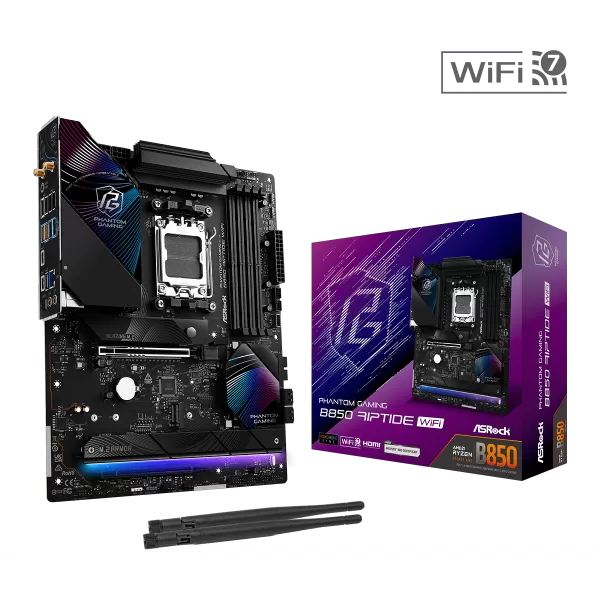 Placa de Baza ASROCK PHANTOM GAMING B850 RIPTIDE WIFI AM5, 4x DDR5, 1x HDMI, 2x PCIE x16, 5x M.2, 4x SATA 6GB/s, ATX