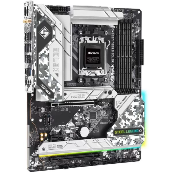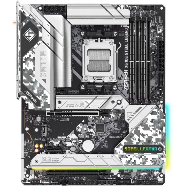 Placa de baza AsRock Socket AM5, X670E Steel Legend Supports AMD Ryzen™ 7000 Series Processors 16+2+1 Phase Power Design, SPS 4 x DDR5 DIMMs, supports up to 6600+(OC) 1 PCIe 5.0 x16, 1 PCIe 3.0 x16, 1 PCIe 3.0 x1 Graphics Output Options: 1 HDMI, 1 DisplayPort 7.1 CH HD Audio with Content Protection (Realtek ALC1220 Audio Codec), Nahimic Audio 1 Blazing M.2(PCIe Gen5x4), 3 Hyper M.2 (PCIe Gen4x4), 4 SATA3 1 USB 3.2 Gen2 Type-A (Rear), 10 USB 3.2 Gen1 (6 Rear, 4 Front), 8 USB 2.0 (4 Rear, 4 Front) Realtek 2.5G LAN, Realtek 1G LAN 802.11ax Wi-Fi 6E + Bluetooth