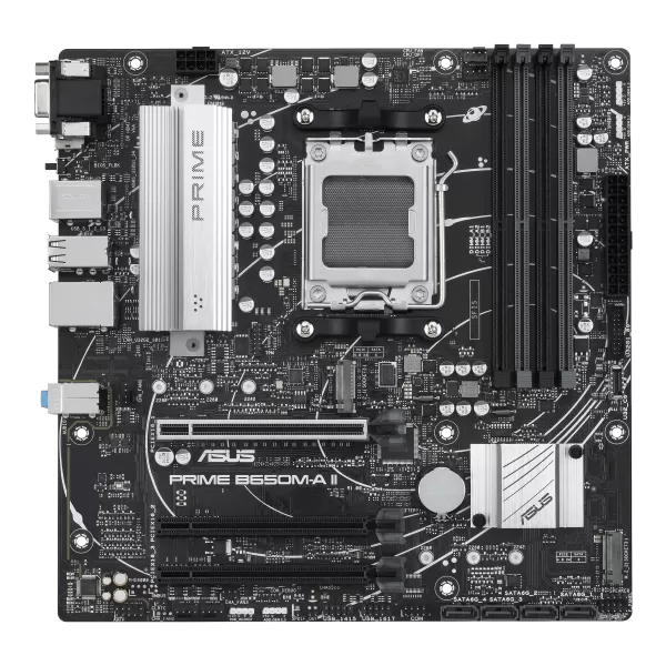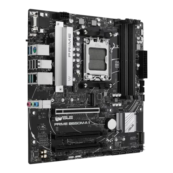 Placa de baza Asus Prime B650M-A II AM5, 4x DDR5, 1x DisplayPort, 1x VGA, 1x HDMI, 3x PCIe x16, 2x M.2, 4x SATA 6Gbps, 2.5Gbps LAN, mATX