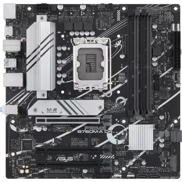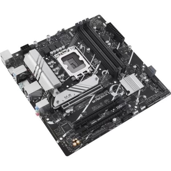 Placa de baza ASUS PRIME B760M-A D4 LGA 1700 Model PRIME B760M-A D4 CPU Intel® Socket LGA1700 for 13th Gen Intel® Core™ Processors & 12th Gen Intel® Core™, Pentium® Gold and Celeron® Processors* Supports Intel® Turbo Boost Technology 2.0 and Intel® Turbo Boost Max Technology 3.0** *Refer to www.asus.com for CPU support list. ** Intel® Turbo Boost Max Technology 3.0 support depends on the CPU types. Chipset Intel® B760 Chipset Memory 4 x DIMM, Max. 128GB, DDR4 5333(OC)/5066(OC)/5000(OC)/4800(OC)/4600 (OC)/4400(OC)/4266(OC)/4000(OC)/3733(OC)/3600(OC)/3466(OC)/3400(OC)/3333 (OC)/3200/3000/2933/2800/2666/2400/2133 Non-ECC, Un-buffered Memory* Dual Channel Memory Architecture Supports Intel® Extreme Memory Profile (XMP) OptiMem II * Supported memory types, data rate(Speed), and number of DRAM modules vary depending on the CPU and memory configuration, for more information refer to www.asus.com for memory support list. Graphics 1 x DisplayPort** 2 x HDMI® ports*** * Graphics specifications may vary between CPU types. Please refer to www.intel.com for any updates. ** Supports max. 4K@60Hz as specified in DisplayPort 1.4. *** Supports 4K@60Hz as specified in HDMI® 2.1. Expansion Slots Intel® 13th & 12th Gen Processors 1 x PCIe 4.0 x16 slot Intel® B760 Chipset 1 x PCIe 4.0 x16 slot (supports x4 mode) 1 x PCIe 4.0 x16 slot (supports x1 mode) Note: To ensure compatibility of the device installed, please refer to https://www.asus.com/support/ for the list of supported peripherals. Storage Total supports 2 x M.2 slots and 4x SATA 6Gb/s ports* Intel® 13th & 12th Gen Processors M.2_1 slot (Key M), type 2242/2260/2280 (supports PCIe 4.0 x4 mode) Intel® B760 Chipset M.2_2 slot (Key M), type 2242/2260/2280 (supports PCIe 4.0 x4 mode) 4 x SATA 6Gb/s ports * Intel® Rapid Storage Technology supports SATA RAID 0/1/5/10. Ethernet 1 x Realtek 2.5Gb Ethernet
