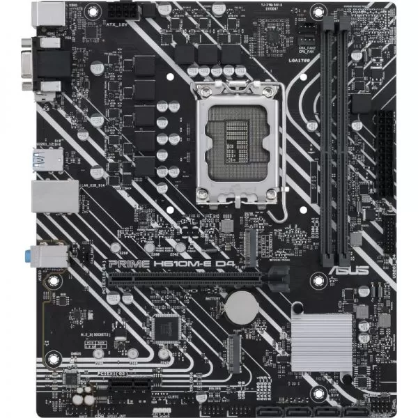 Placa de baza Asus PRIME H610M-E D4 LGA 1700 Intel® H610 (LGA 1700) mic-ATX motherboard with DDR4, PCIe 4.0, dual M.2 slots, Realtek 1 Gb Ethernet, DisplayPort, HDMI®, D-Sub, USB 3.2 Gen 1 ports, SATA 6 Gbps, COM header, RGB header Intel® LGA 1700 socket: Ready for 12th Gen Intel® processors Comprehensive cooling: PCH heatsink and Fan Xpert 2+ Ultrafast connectivity: 32Gbps M.2 slot, Realtek 1 Gb Ethernet and USB 3.2 Gen 1 5X Protection III: Multiple hardware safeguards for all-round protection https://www.asus.com/Motherboards-Components/Motherboards/PRIME/PRIME- H610M-E-D4/