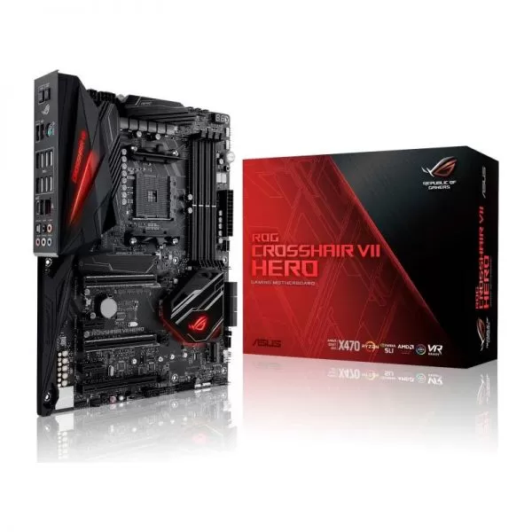 Placa de baza ASUS, CROSSHAIR VII HERO, AMD® X470, 4 x DIMM, maxim 64GB, memorie DDR4 la 3466(O.C.)/3200(O.C.)/3000(O.C.)/2933(O.C.)/2800 (O.C.)/2666/2400/2133 MHz Non-ECC, 2 x PCIe 3.0/2.0 x16 (x16 sau dual x8), 1 x PCIe 3.0/2.0 x16 (maxim x8), 1 x PCIe 2.0 x16 (maxim x4), 2 x PCIe 2.0 x1, 6x SATA 6Gb/s ports, Intel Ethernet Controller I211-AT, 8x USB 3.1, 2x USB 2.0, ATX