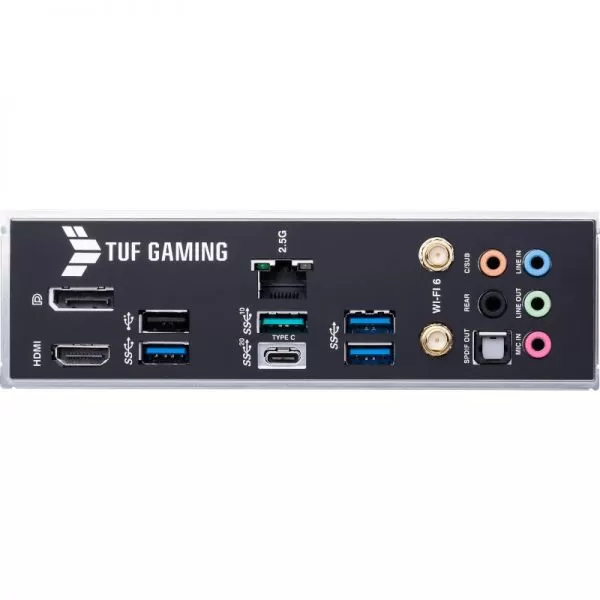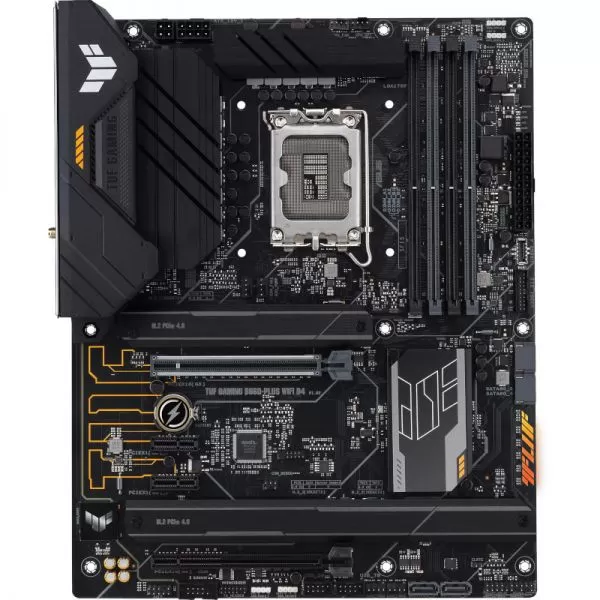 Placa de baza Asus TUF GAMING B660-PLUS WIFI D4 ntel® B660 (LGA 1700) ATX motherboard with PCIe 5.0 slot, three PCIe 4.0 M.2 slots, 10+1 DrMOS, Intel® 2.5Gb Ethernet, DisplayPort, HDMI, front USB 3.2 Gen 2 Type-C®, Aura Sync Intel® LGA 1700 socket: Ready for 12th Gen Intel® processors Enhanced power solution: 10+1 DrMOS power stages, six-layer PCB, 8+4 ProCool sockets, military-grade TUF components and Digi+ VRM for maximum durability Comprehensive cooling: Enlarged VRM heatsink, Stack Cool 3+, M.2 heatsinks, PCH heatsink, hybrid fan headers and Fan Xpert 4 utility Latest connectivity: PCIe 5.0 slot, PCIe 4.0 M.2 slots, rear USB 3.2 Gen 2x2 Type-C®, front panel header for USB 3.2 Gen 2 Type-C® and Thunderbolt 4™ support Made for online gaming: Intel® WiFi 6, Intel® 2.5Gb Ethernet, TUF LANGuard Two-way AI Noise-Cancelation: Reduces background noise from the microphone and audio output for crystal-clear communication in games or video conferences https://www.asus.com/Motherboards-Components/Motherboards/TUF- Gaming/TUF-Gaming-B660-PLUS-WIFI-D4/