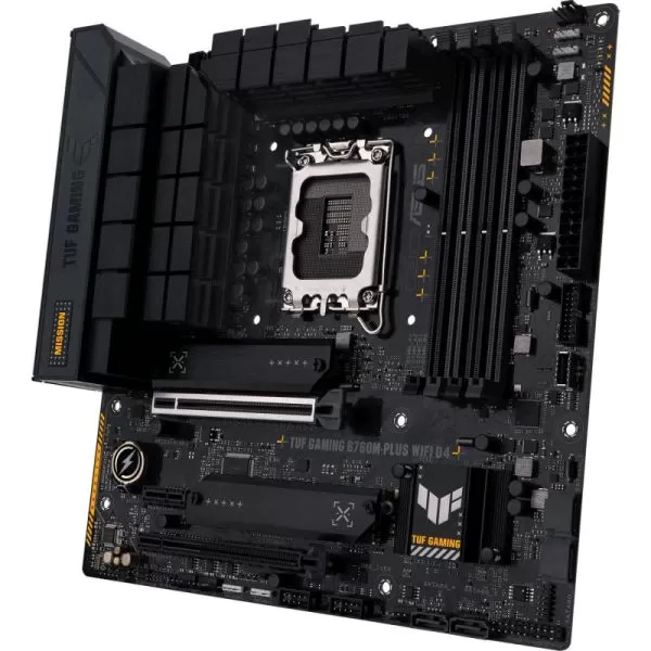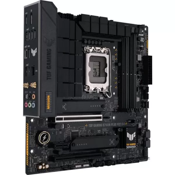 Placa de baza ASUS TUF B760M-PLUS DDR4 WIFI LGA1700 Model TUF GAMING B760M-PLUS WIFI D4 CPU Intel® Socket LGA1700 for 13th Gen Intel® Core™ & 12th Gen Intel® Core™, Pentium® Gold and Celeron® Processors* Supports Intel® Turbo Boost Technology 2.0 and Intel® Turbo Boost Max Technology 3.0** * Refer to www.asus.com for CPU support list. ** Intel® Turbo Boost Max Technology 3.0 support depends on the CPU types. Chipset Intel® B760 Chipset Memory 4 x DIMM, Max. 128GB, DDR4 5333(OC)/ 5066(OC)/5000(OC)/4800(OC)/4600 (OC)/4400(OC)/4266(OC)/4000(OC)/3733(OC)/3600(OC)/3466(OC)/3400(OC)/3333 (OC)/3200/3000/2933/2800/2666/2400/2133 Non-ECC, Un-buffered Memory* Dual Channel Memory Architecture Supports Intel® Extreme Memory Profile (XMP) OptiMem II * Supported memory types, data rate (speed), and number of DRAM modules vary depending on the CPU and memory configuration, for more information please refer to CPU/Memory Support under the Support tab or visit https://www.asus.com/support/ Graphics 1 x DisplayPort** 1 x HDMI® port*** * Graphics specifications may vary between CPU types. Please refer to www.intel.com for any updates. ** Supports max. 4K@60Hz as specified in DisplayPort 1.4. ***Supports 4K@60Hz as specified in HDMI 2.1. Expansion Slots Intel® 13th & 12th Gen Processors 1 x PCIe 5.0 x16 slot Intel® B760 Chipset 1 x PCIe 4.0 x16 slot (supports x4 mode) 1 x PCIe 4.0 x1 slot - To ensure compatibility of the device installed, please refer to https://www.asus.com/support/ for the list of supported peripherals. Storage Total supports 2 x M.2 slots and 4 x SATA 6Gb/s ports* Intel® 13th & 12th Gen Processors M.2_1 slot (Key M), type 2242/2260/2280 (supports PCIe 4.0 x4 mode) Intel® B760 Chipset M.2_2 slot (Key M), type 2242/2260/2280 (supports PCIe 4.0 x4 mode) 4 x SATA 6Gb/s ports * Intel® Rapid Storage Technology supports SATA RAID 0/1/5/10. Ethernet 1 x Realtek 2.5Gb Ethernet TUF LANGuard