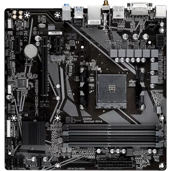 Placa de Baza GIGABYTE A520M DS3H AC AM4, 4x DDR4, 1x PCIE 3.0 x16 2x PCIE 3.0 x1, 1x M.2, 4x SATA 6GB/s, mATX