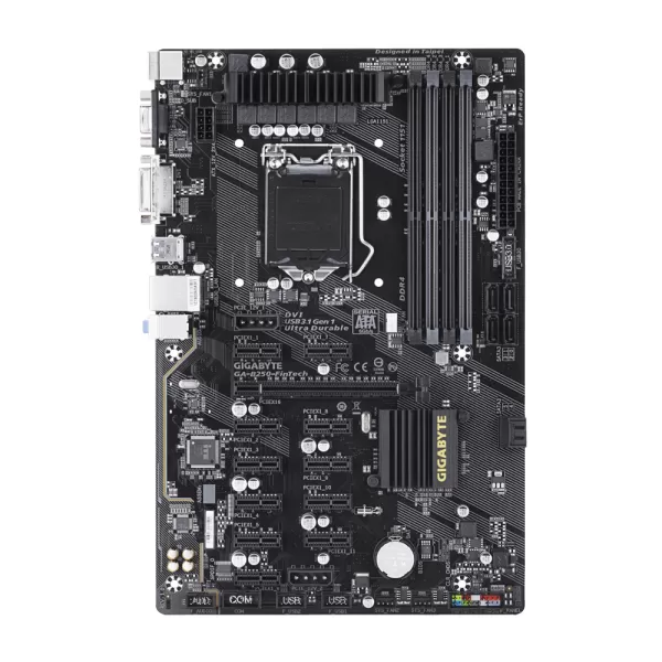 | Nume produs | Gigabyte GA-B250-FinTech, DDR4, 12 Native PCIe Slots, 6 x SATA 6Gb/s, USB 3.1 |
