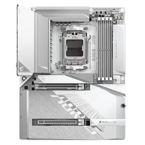 Placa de Baza GIGABYTE B850 AORUS STEALTH ICE AM5, 4x DDR5, 1x HDMI 1x PCIE 5.0 x16 1x PCIE 4.0 x16, 2x M.2, 2x SATA 6GB/s, ATX