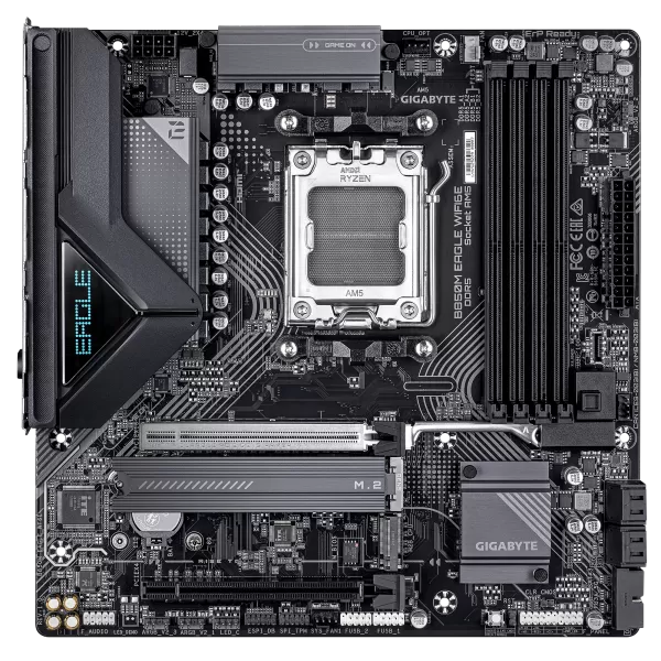 GIGABYTE B850M EAGLE WIFI6E. Processor manufacturer: AMD, Processor socket: Socket AM5, Compatible processor series: AMD Ryzen 7000 Series, AMD Ryzen 8000 Series, AMD Ryzen 9000 Series. Supported memory types: DDR5-SDRAM, Maximum internal memory: 256 GB, Memory slots type: DIMM. Supported storage drive interfaces: M.2, PCI Express 4.0, PCI Express 5.0, SATA III, Supported storage drive types: HDD & SSD, RAID levels: 0, 1, 5, 10. Maximum resolution: 4096 x 2160 pixels. Ethernet interface type: 2.5 Gigabit Ethernet, LAN controller: Realtek RTL8125, Top Wi-Fi standard: Wi-Fi 6E (802.11ax)
