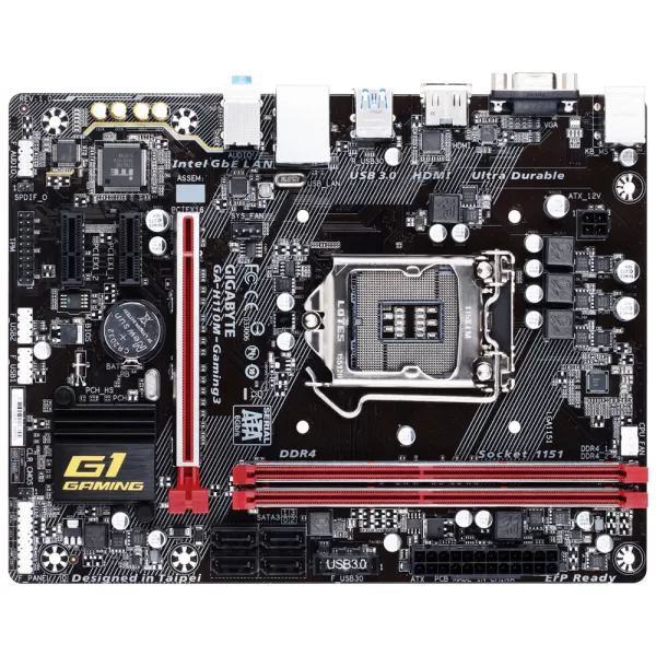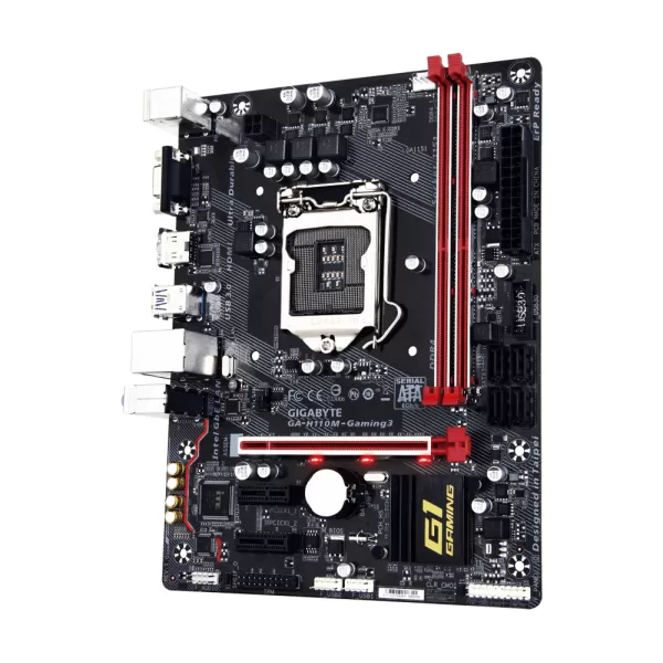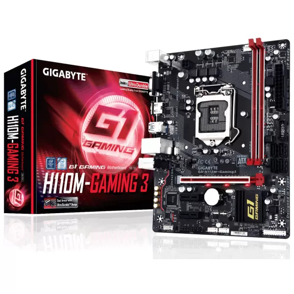 Placa de baza Gigabyte H110M-Gaming 3, LGA1151 v2, Intel H110 Express Chipset, 2 x DDR4 DIMM sockets supporting up to 32 GB of system memory, Support for DDR4 2400/2133 MHz memory modules, 1x D-Sub, 1x HDMI, 1x PCI Express x16, 2x PCI Express x1, 4 x SATA 6Gb/s connectors, 4 x USB 3.0/2.0, 6 x USB 2.0/1.1, Micro ATX.