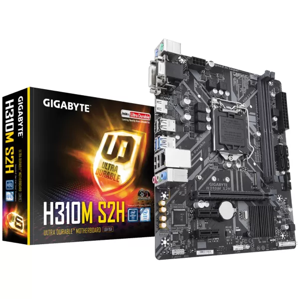 Gigabyte Main Board Desktop H310 S2 rev 1.1 (S1151, 2xDDR4, VGA, 1xPCIe x16, 2xPCIe x1, 4xSATA III, 2x PS/2, 4x USB3.1, 6x USB2.0/1.1, ALC887, GLAN) mATX Retail