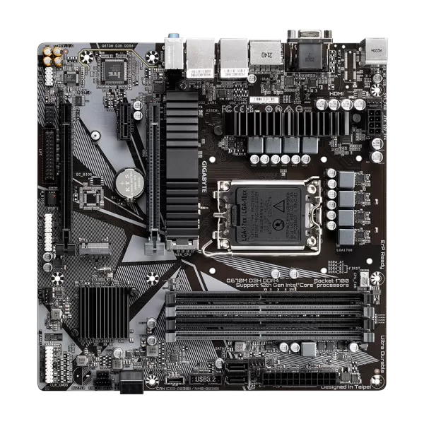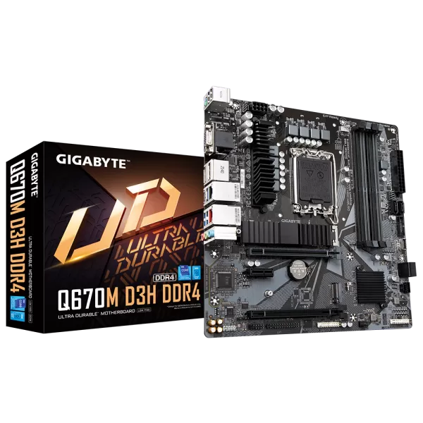 Placa de baza Gigabyte Q670 D3H LGA1700, 4x DDR4, 1x D-Sub, 1x HDMI, 1x DisplayPort, 2x PCIe 4.0 x16, 1x PCIe 3.0 x1, 2x M.2, 4x SATA 6Gbps, mATX