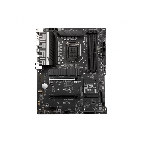 Placa de baza MSI B560-A PRO LGA 1200 4719072864316 / 911-7D15-019 SPECIFICATIONS Model Name B560-A PRO CPU Support Supports 10th Gen Intel® Core™ Processors, 11th Gen Intel® Core™ Processors, Pentium® Gold and Celeron® Processors CPU Socket LGA 1200 socket Chipset Intel® B560 Chipset Graphics Interface 1x PCIe 4.0 x16 slot 1x PCIe 3.0 x16 slot Display Interface Support 4K@60Hz as specified in HDMI 2.0b, DisplayPort 1.4 – Requires Processor Graphics Memory Support 4 DIMMs, Dual Channel DDR4-5066MHz(OC) Expansion Slots 1x PCIe 3.0 x1 slot Storage 1x M.2 Gen4 x4 slot 2x M.2 Gen3 x4 slots 6x SATA 6Gb/s ports USB ports 1x USB 3.2 Gen 2x2 20Gbps (1 Type-C) 1x USB 3.2 Gen 2 10Gbps (1 Type-C) 6x USB 3.2 Gen 1 5Gbps(6 Type-A) 8x USB 2.0 LAN Realtek® 8125B 2.5G LAN Audio 8-Channel (7.1) HD Audio with Audio Boost https://www.msi.com/Motherboard/B560-A-PRO/Specification