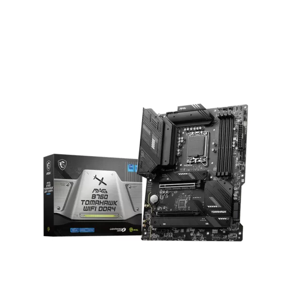 Placa de baza MSI MAG B760 TOMAHAWK WIFI LGA1700 DDR4 SPECIFICATIONS Model Name MAG B760 TOMAHAWK WIFI DDR4 CPU Support Supports 12th/ 13th Gen Intel® Core™ Processors, Pentium® Gold and Celeron® Processors CPU Socket LGA 1700 Chipset Intel® B760 Chipset Expansion Slots 1x PCIe 5.0 x16 slot, 1x PCIe 3.0 x16 slot, 1x PCIe 4.0 x1 slot Display Interface Support 4K@60Hz as specified in HDMI™ 2.1, DisplayPort 1.4 – Requires Processor Graphics Memory Support 4 DIMMs, Dual Channel DDR4 5333+MHz (OC) Storage 3x M.2 Gen4 x4 64Gbps slots, 4x SATA 6Gb/s ports USB ports 1x USB 3.2 Gen 2x2 20Gbps (Type-C), 5x USB 3.2 Gen 2 10Gbps (Type-A + Type-C), 2x USB 3.2 Gen 1 5Gbps (Type-A), 8x USB 2.0 LAN Realtek® RTL8125BG 2.5Gbps LAN Wireless / Bluetooth Intel® Wi-Fi 6E, Bluetooth 5.3 Audio 8-Channel (7.1) HD Audio with Audio Boost
