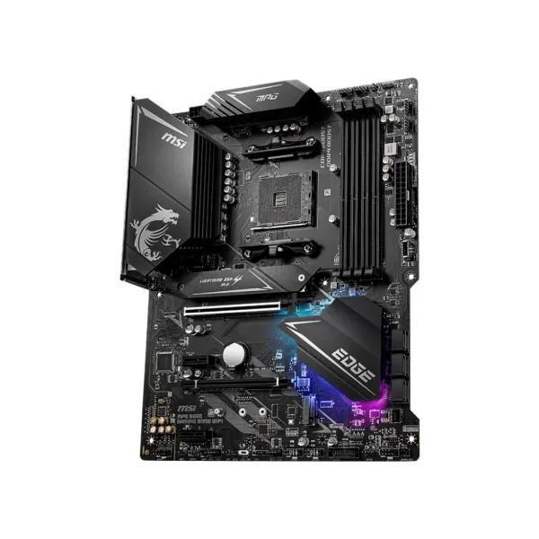 Placa de baza MSI MPG B550 GAMING EDGE WIFI AM4 911-7C91-010 / 4719072728632 SPECIFICATION Model Name MPG B550 GAMING EDGE WIFI CPU Support Supports AM4 socket 3rd Gen AMD Ryzen™ Processors, and future AMD Ryzen™ processors with BIOS update CPU Socket AM4 Chipset AMD B550 Chipset Graphics Interface 1x PCI-E 4.0/3.0 x16 slot + 1x PCI-E 3.0 x16 slot Support 2-way AMD CrossFire™ Technology Display Interface DisplayPort, HDMI – Requires Processor Graphics Memory Support 4 DIMMs, Dual Channel DDR4-4866+(OC) Expansion Slots 2x PCI-E 3.0 x1 slots Storage 1x M.2 Gen4 x4 + 1x M.2 Gen3 x4 slot 6x SATA 6Gb/s ports USB Ports 2x USB 3.2 Gen 2 10Gbps (1 Type-A + 1 Type-C) 5x USB 3.2 Gen 1 5Gbps (4 Type-A + 1 Type-C) 6x USB 2.0 LAN Realtek® 8125B 2.5G LAN Wireless / BT Intel® Wi-Fi 6 AX200, Bluetooth 5.1 Audio 8-Channel (7.1) HD Audio with Audio Boost
