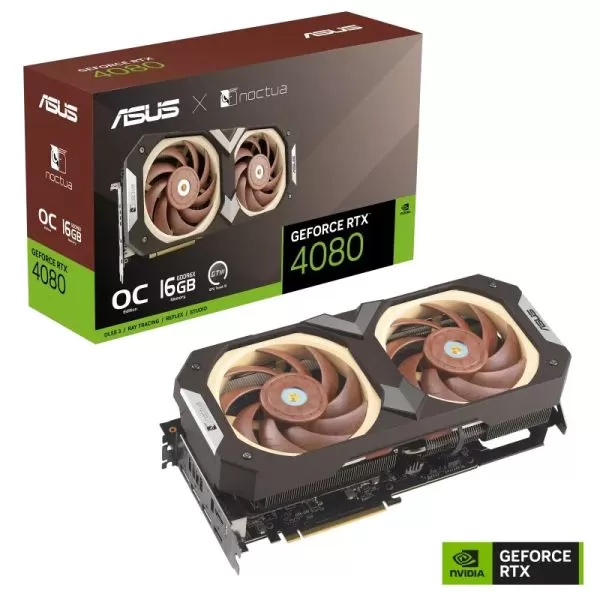Placa video Asus GeForce RTX 4080 OC 16GB Noctua, GDDR6X, 256BIT, clock speed 2596MHz, 2x HDMI 2.1a, 3x DisplayPort 1.4a, PCIe 4.0