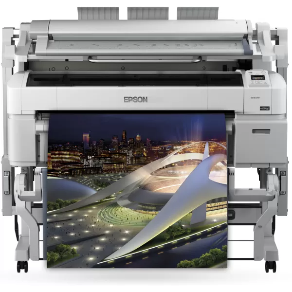 Cele două role cu încărcare automată a hârtiei şi comutarea automată a mediilor de tipărire combină productivitatea maximă cu flexibilitatea. Scanerul versatil de 36 inci integrat vă permite să digitalizaţi documentele de format mare (de la hârtie de calc până la plăcile de 1,3 mm) şi să scanaţi către fişiere, către e-mail sau pentru partajarea cu alte imprimante SC-T. Un document original A1 poate fi scanat şi imprimat în aproximativ 39 de secunde.