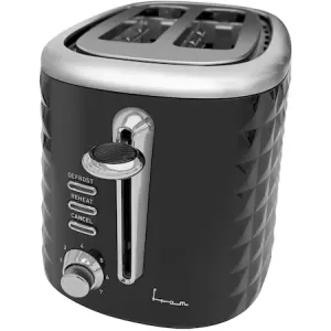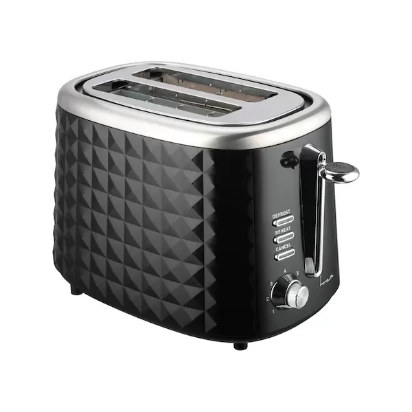 Capacitate: 2 felii, functii: decongelare, reincalzire si anulare, 7 niveluri de rumenire, functie de autocentrare a feliilor de paine, tavite detasabile pentru firimituri, putere: 850W, culoare: negru