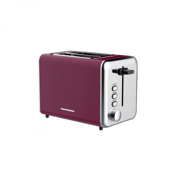 Prajitor de paine Heinner TP-1000BG,putere: 715-850W, capacitate: doua felii, 6 nivele de rumenire, 3 functii: dezghetare, oprire, reincalzire, tavita de firimituri detasabila, spatiu depozitare cablu de alimentare, material: inox, culoare: visiniu.