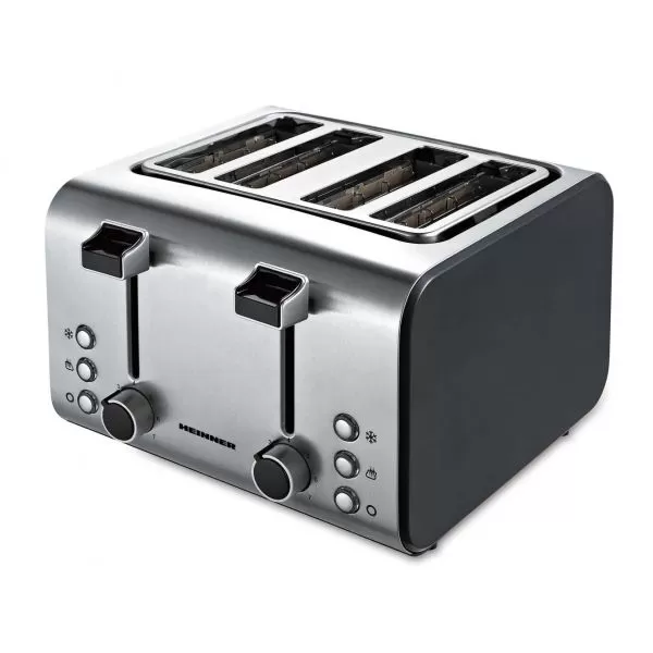Prajitor de paine Heinner HTP-1400BKSS, capacitate: 4 felii, functii: decongelare, reincalzire, anulare, 7 niveluri de rumenire, functie de autocentrare, tavite detasabile pentru firimituri, carcasa din inox, putere: 1400-1600W
