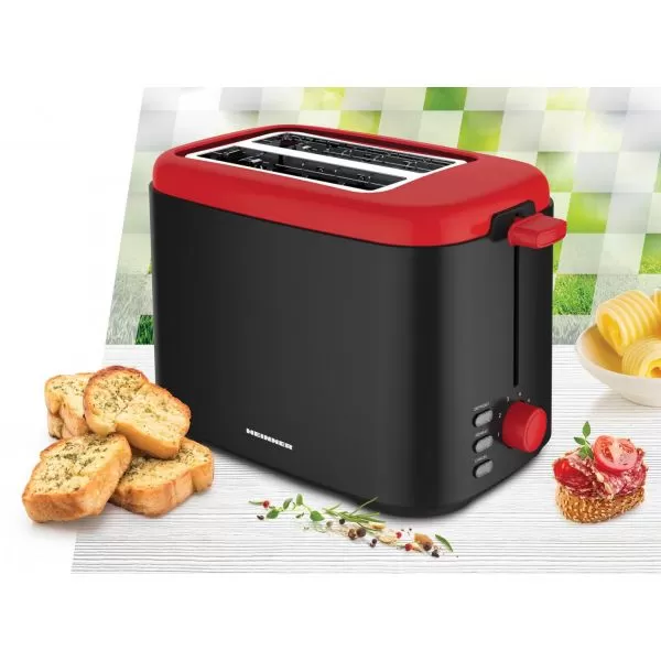 Prajitor de paine Heinner HTP-800BKR, 800W, Negru/Rosu