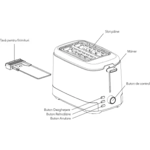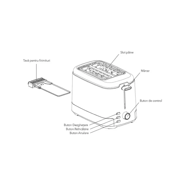 | Caracteristici Prajitor de paine Tesla TS300BWX, 800W, Alb: | |