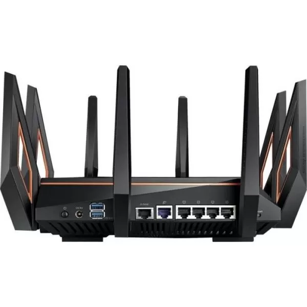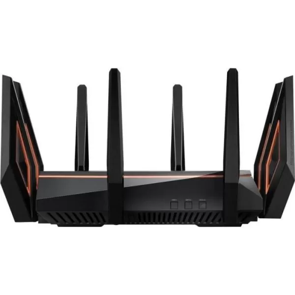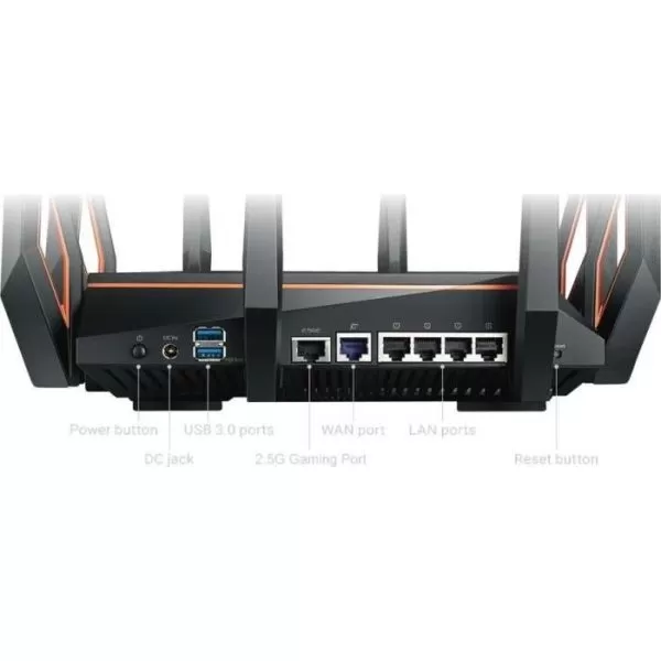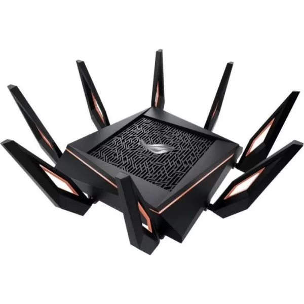 Router pentru Jocuri AX11000 Tri-band WiFi 6 (802.11ax) - Cel mai rapid router 10 Gigabit Wi-Fi din lume cu procesor quad-core, port 2.5G dedicat jocurilor, bandă DFS, tehnologie wtfast, QoS Adaptiv, soluție AiMesh pentru sisteme WiFi de tip plasă și soluție AiProtection Pro pentru securizarea rețelei