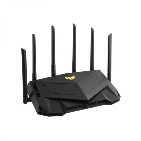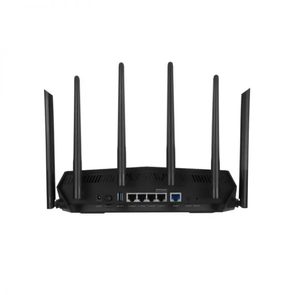 ASUS TUF Gaming AX5400 Dual Band WiFi 6 Gaming Router, Network Standard: IEEE 802.11a, IEEE 802.11b, IEEE 802.11g, WiFi 4 (802.11n), WiFi 5 (802.11ac), WiFi 6 (802.11ax), IPv4, IPv6, External antenna x 6, Transmit/Receive: 2.4 GHz 2 x 2, 5 GHz-2 4 x 4, Processor: 1.5 GHz tri- core, Memory: 256 MB Flash, 512 MB RAM, Ports: RJ45 for Gigabits BaseT for WAN x 1, RJ45 for Gigabits BaseT for LAN x 4 USB 3.2 Gen 1 x 1.