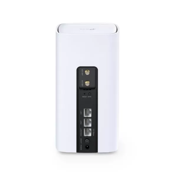 5G AX3600 Wireless Dual-Band 2.5 Gig Router 1 × 2.5 Gbps WAN/LAN Port 2 × 10/100/1000 Mbps LAN Ports 1 × Nano SIM Card Slot 2 × External SMA-F Antenna Interface 1148 Mbps at 2.4 GHz, 2402 Mbps at 5 GHz 8 × 5G/LTE Internal Antennas 2 × Wi-Fi Internal Antennas