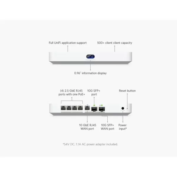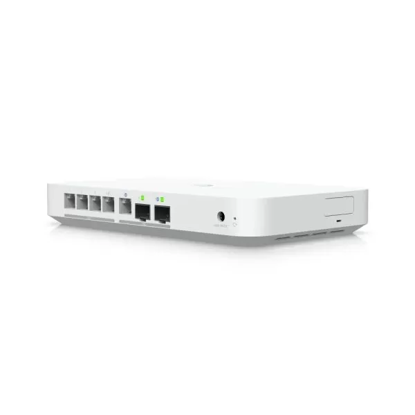 Ubiquiti UniFi UCG-Fiber-EU Desktop 10G Cloud Gateway with integrated PoE switch, Includes full UniFi application suite for device management, 5 Gbps routing with IDS/IPS, 10G SFP+ and (1) 10 GbE RJ45 WAN port, 10G SFP+ LAN port