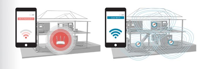 Mai multa acoperire Cele trei puncte Covr discrete Covr acopera pana la 5000 de metri patrati - o acoperire suficienta Wi-Fi pentru o gama larga de dimensiuni si configuratii ale carcasei. Terminalele Wi-Fi sunt acum o problema trecutul. |