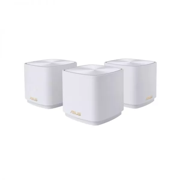 Asus dual-band large home Mesh ZENwifi system, XD4 3 pack; white , 256 MB Flash, 256 MB RAM ; Network Standard IEEE 802.11a, IEEE 802.11b, IEEE 802.11g, IEEE 802.11n, IEEE 802.11ac, IEEE 802.11ax, IPv4, IPv6, Internal dual-band antenna x 2, MIMO technology 2.4 GHz 2 x 2, 5 GHz 2 x 2, RJ45 for 1000 BaseT for WAN/LAN x 1, RJ45 for 1000 BaseT for LAN x 1.
