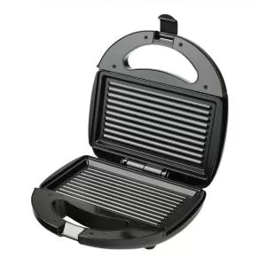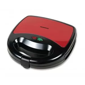 Plite fixe, cu invelis antiaderent, capacitate: 2 sandwich-uri, indicator luminos „Pregatit pentru utilizare", indicator luminos de alimentare, dimensiune plite: 23.4x13.3cm, putere: 750W, culoare: negru cu roșu