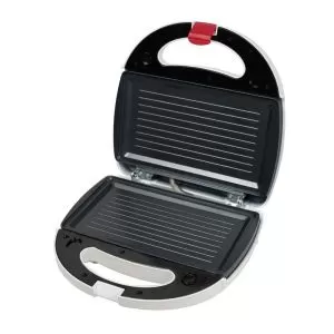Plite detasabile, cu invelis antiaderent, plite pentru grill și sandviciuri, capacitate: 2 sandviciuri, indicator luminos „Pregatit pentru utilizare", indicator luminos de alimentare, dimensiune plite: 23.6x13.3cm, putere: 750W, culoare: alb