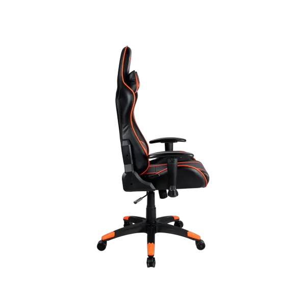 Gaming chair, PU leather, Cold molded foam, Metal Frame, Butterfly mechanism, 90-150 dgree, 2D armrest, Class 4 gas lift, Nylon 5 Stars Base, 60mm PU caster, black+Orange.