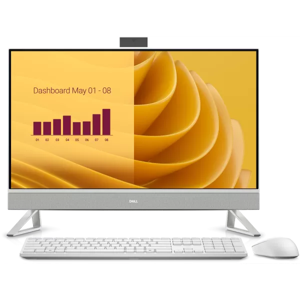 Dell 27 AIO,27"FHD(1920x1080)Infinity Touch,Intel Core 7 150U(12MB cache,10cores,12threads,5.4GHz),16GB(2x8)DDR5 5200 MT/s,1TB(M.2)PCIe NVMe SSD,Intel Graphics,Wi-Fi 6E AX211(2x2)+BT,Dell Pro Kb&Mouse-KM5221W,White,Win11Pro,3Yr NBD