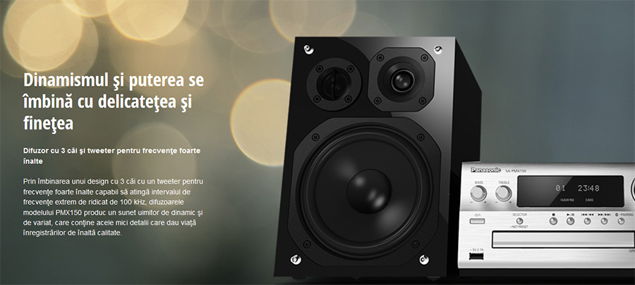 Prin îmbinarea unui design cu 3 cai cu un tweeter pentru frecvente foarte inalte capabil sa atinga intervalul de frecvente extrem de ridicat de 100 kHz, difuzoarele modelului PMX150 produc un sunet uimitor de dinamic ?i de variat, care contine acele mici detalii care dau viata inregistrarilor de inalta calitate.