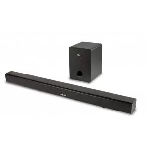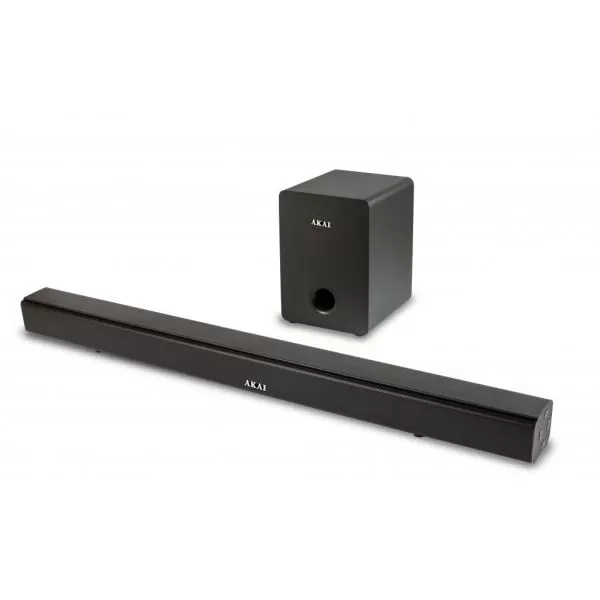 2.1 CHANNEL SOUNDBAR AKAI ASB-6WSW Audio output: 70W RMS Speaker drivers: 4 x 2″ 10W units and 2 x bass diaphragm units + 1 x 5.25″ 30W subwoofer units Bluetooth version: 5.0 Bluetooth range: Up to 10m FM frequency range: 87.5MHz-108MHz Connections: USB, OPTICAL, HDMI(ARC), AUX (3.5mm), DC IN Power supply Soundbar 19V 1.5A LED Display Remote control