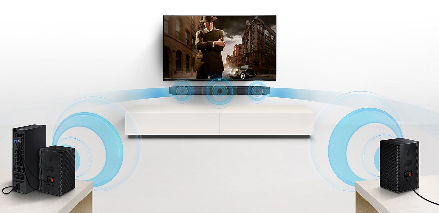Conecteaza Soundbar-ul la televizorul tau Samsung cu usurinta, fara cabluri incurcate, prin Bluetooth sau Wi-Fi. Te vei putea bucura de tot continutul instantaneu, cu un sunet mai clar si impact mai puternic.