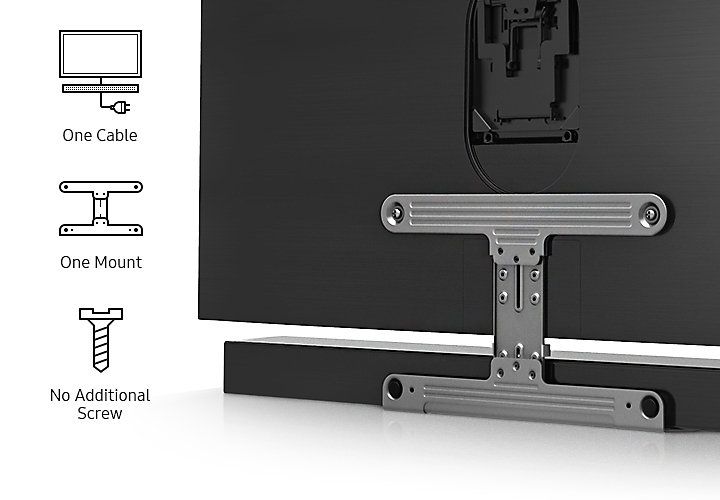 Monteaza soundbar-ul direct la televizor, fara efort si gauri suplimentare in perete. Foloseste un singur cablu pentru a alimenta ambele dispozitive. Fara cabluri incurcate.