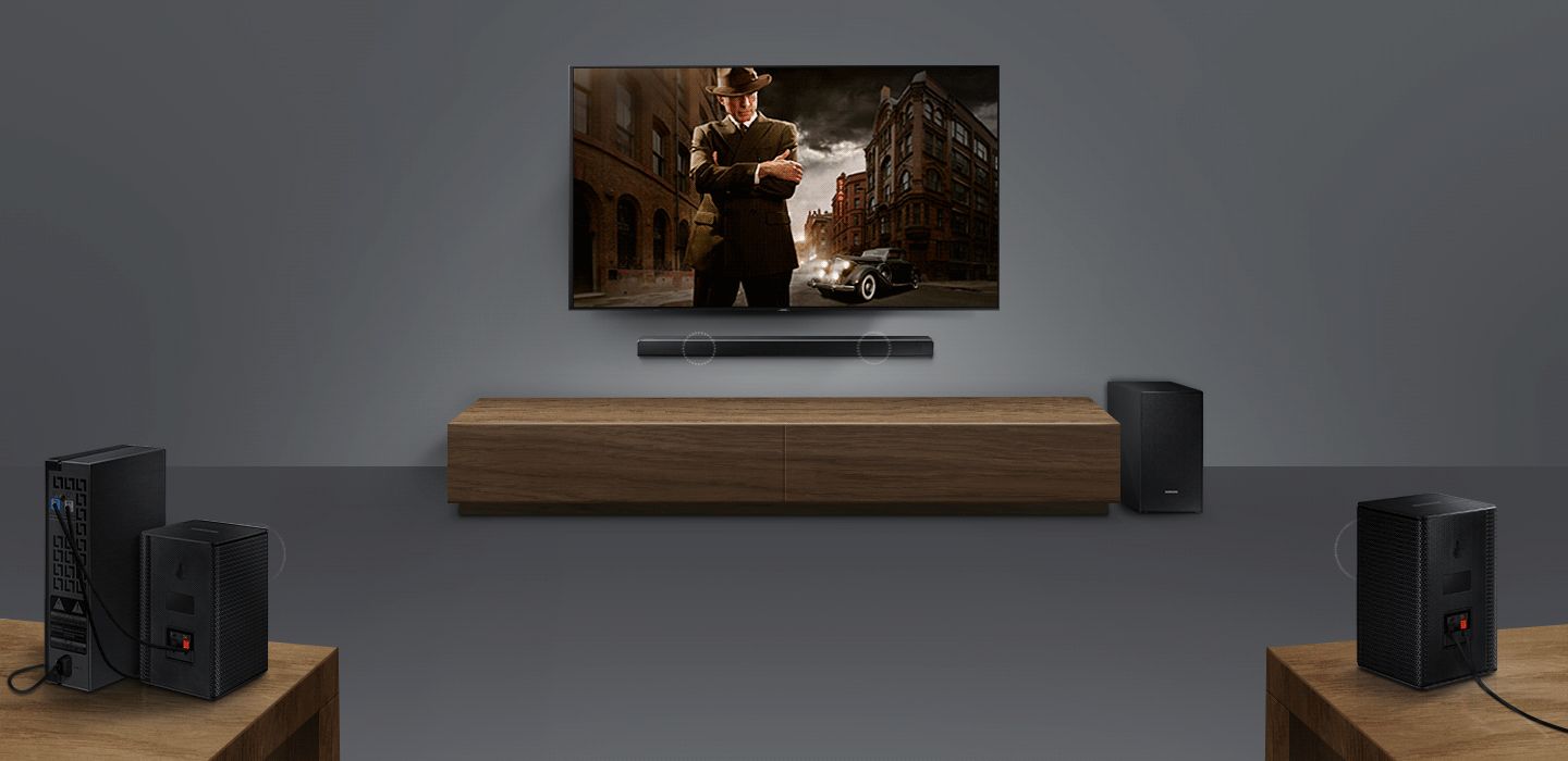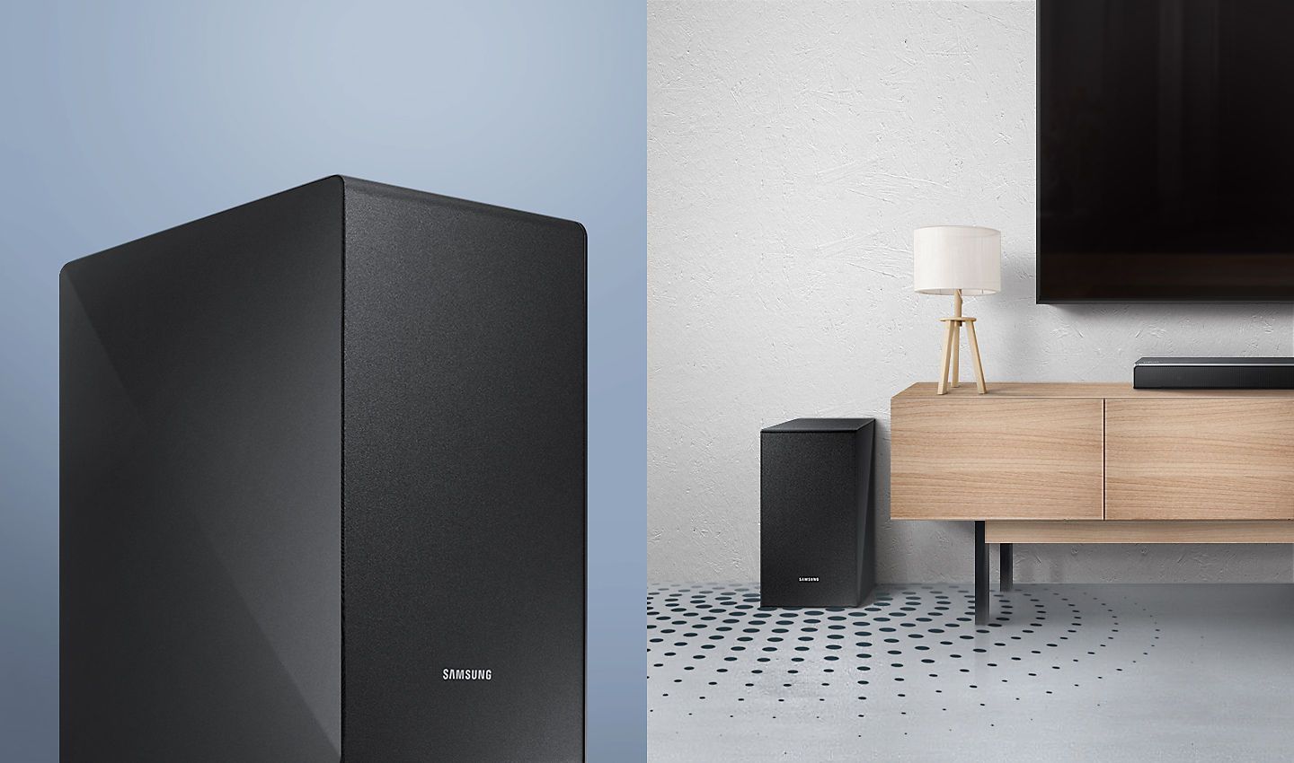 | Amplifica-ti calitatatea audio a televizorului Bucura-te de sunetul vibrant livrat de tehnologia audio Samsung. Basul puternic oferit de subwooferul wireless, transforma orice incapere intr-o sala de cinema. |