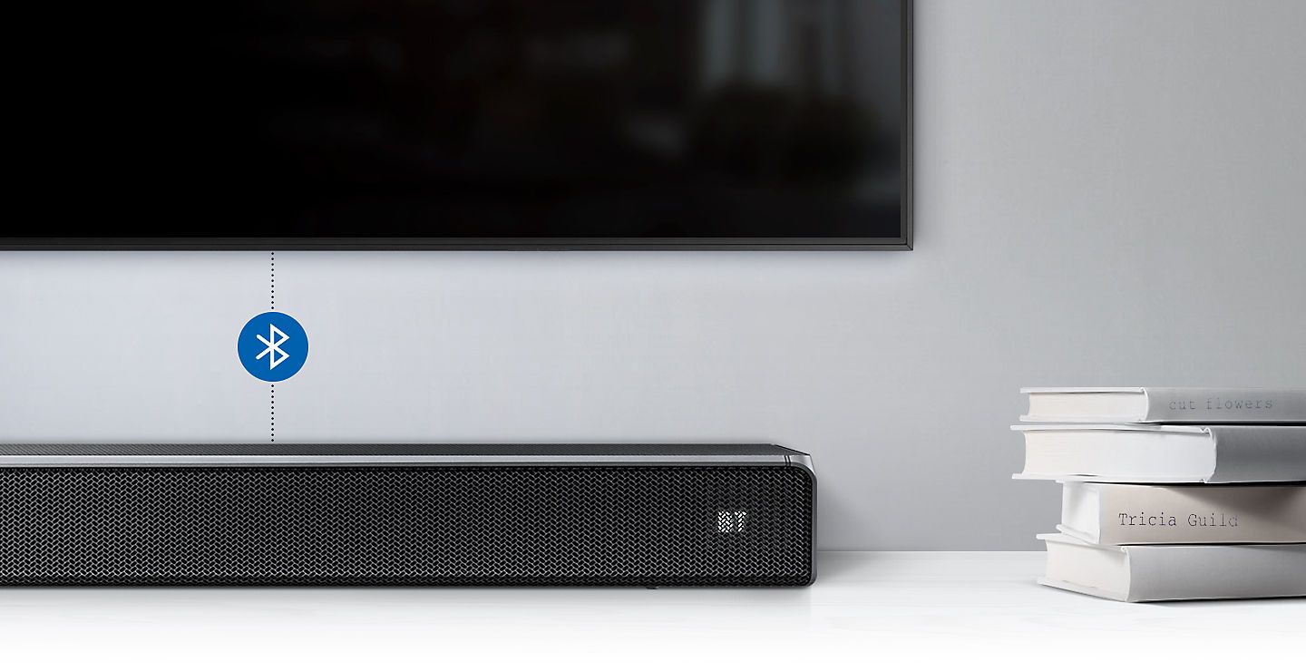 Conecteaza Soundbar-ul la televizorul tau Samsung* cu usurinta, fara cabluri incurcate, prin Bluetooth. Te vei putea bucura de tot continutul instantaneu, cu un sunet mai clar si mai puternic.