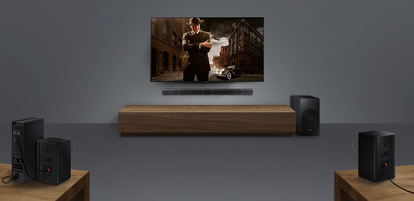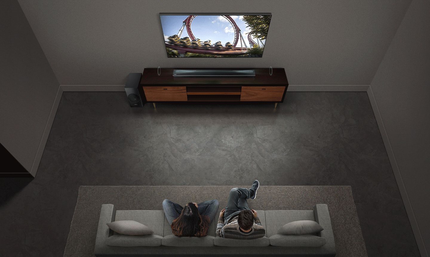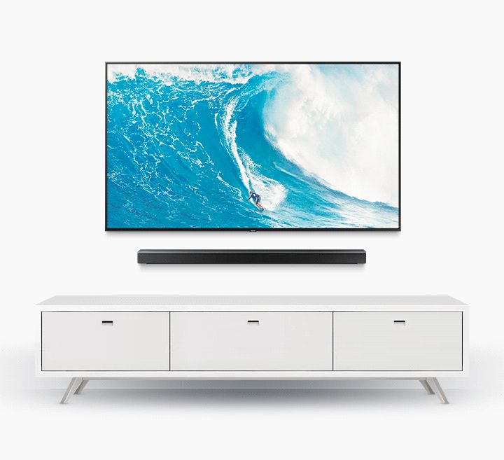 | Paseste in mijocul actiunii cu sunetul panoramic Da viata divertismentului. Soundbarul umple fiecare colt al camerei tale cu un sunet dinamic si bogat care iti transforma cu adevarat casa. |