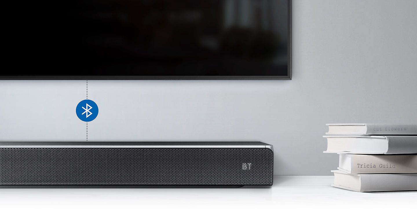 Conecteaza Soundbar-ul la televizorul tau Samsung* cu usurinta, fara cabluri incurcate, prin Bluetooth. Te vei putea bucura de tot continutul instantaneu, cu un sunet mai clar si cu impact mai puternic.
