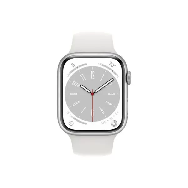 Apple Watch 8 GPS, 41mm Silver Aluminium Case, White Sport Band